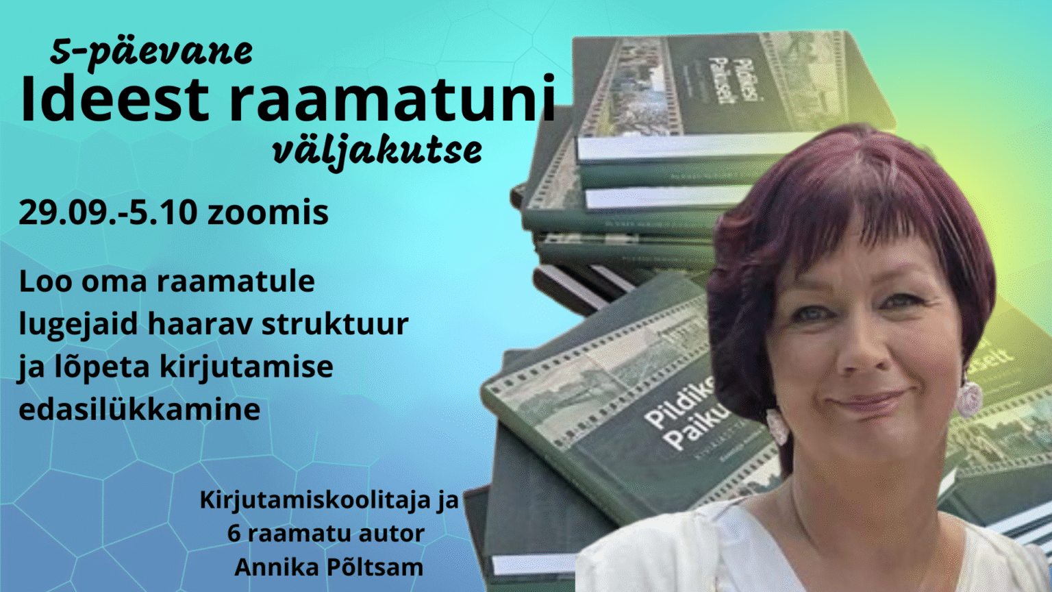 Juhendaja Annika Põltsam on inspiratsioonikoolitaja ning raamatute koostaja ja autor. Ta on töötanud ajakirjaniku ja kogukondade loojana ning olnud kümnete raamatute sünni juures kas siis kirjastaja, koostaja või varikirjutajana.